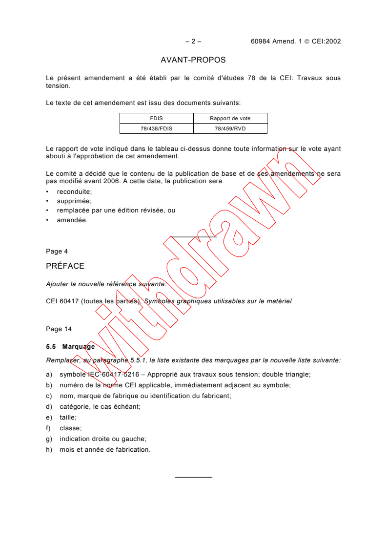 Le présent amendement a été établi par le comité d'études 78 de la CEI: Travaux sous