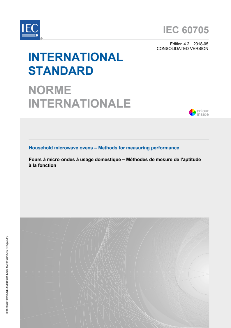 IEC 60705:2010 - Household microwave ovens - Methods for measuring performance Released:4/29/2010 Isbn:9782889102570