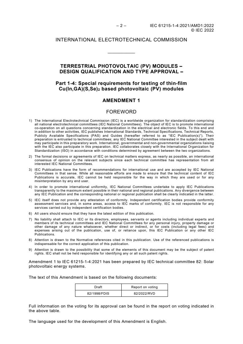 – 4 – IEC 61215-1-4:2021/AMD1:2022