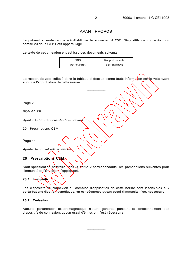 Le présent amendement a été établi par le sous-comité 23F: Dispositifs de connexion, du