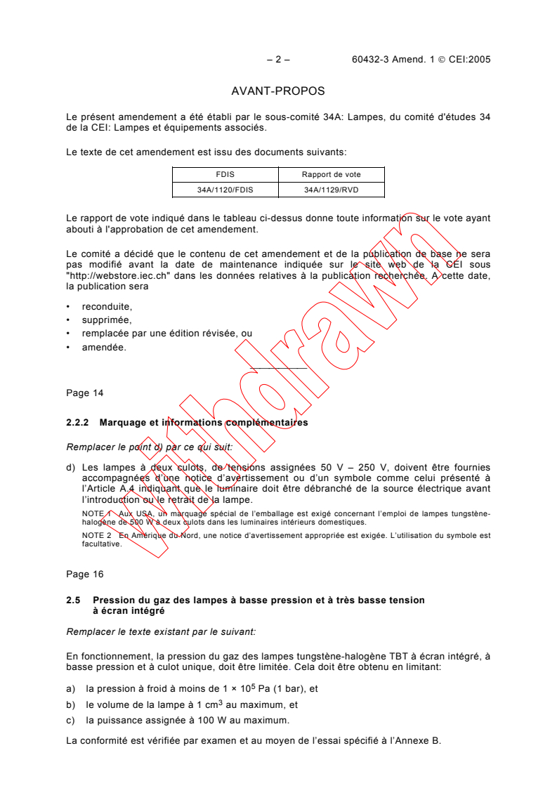 Le présent amendement a été établi par le sous-comité 34A: Lampes, du comité d'études 34