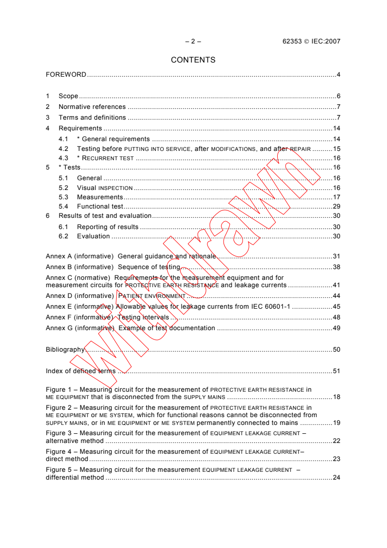 Applies to testing of medical electrical equipment and medical electrical systems, hereafter referred to as me equipment and me systems, or parts of such equipment or systems, which comply with IEC 60601-1, before putting into service, during maintenance, inspection, servicing and after repair or on occasion of recurrent tests to assess the safety of such me equipment or me systems or parts thereof. For equipment not built to IEC 60601-1 these requirements may be used taking into account the safety standards for the design and information in the instructions for use of that equipment. This standard contains tables with allowable values relating to different editions of IEC 60601-1. For the purpose of this standard, the application of measuring methods is independent of the edition according to which the me equipment or me system is designed. This standard contains: - "general requirements", which contain clauses of general concern, and - "particular requirements", further clauses handling special types of me equipment or me systems and applying in connection with the "General requirements". This standard is also applicable to tests after repair. The testing shall be defined according to the extent of work performed and applicable guidance from the manufacturer.