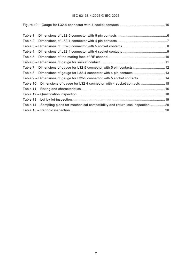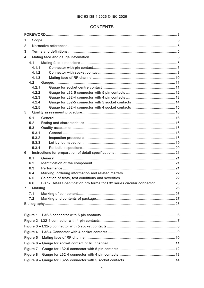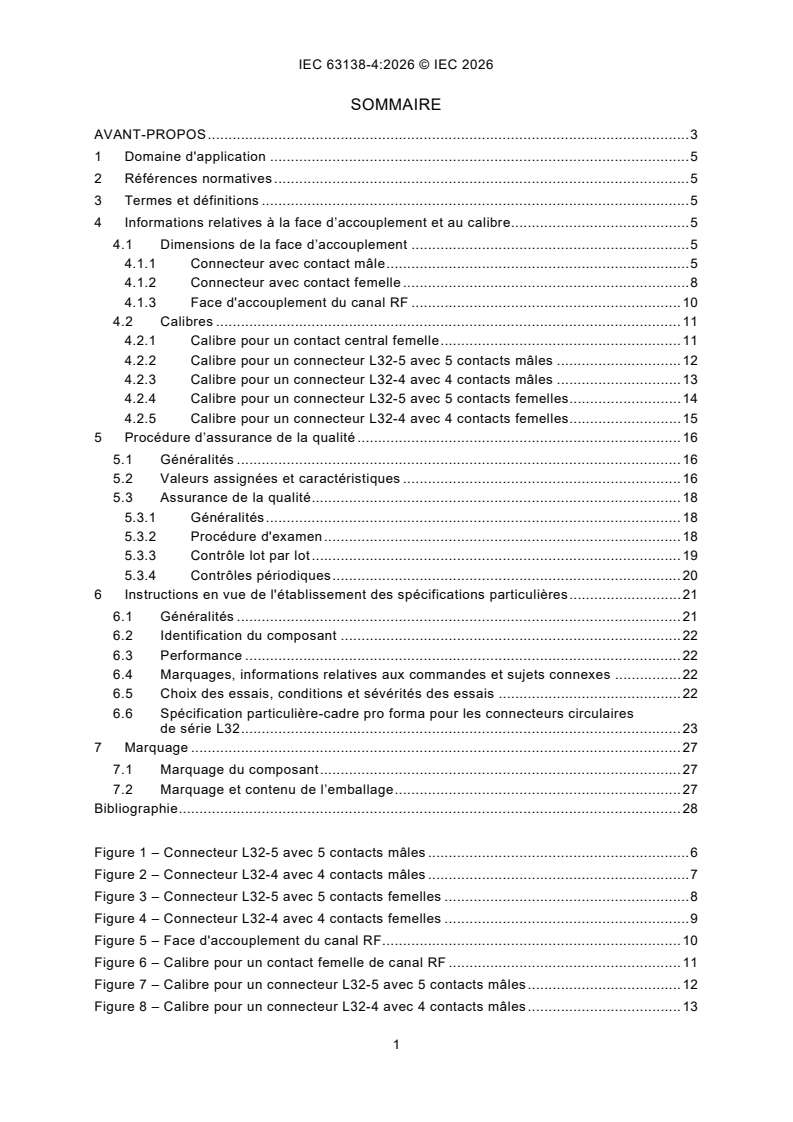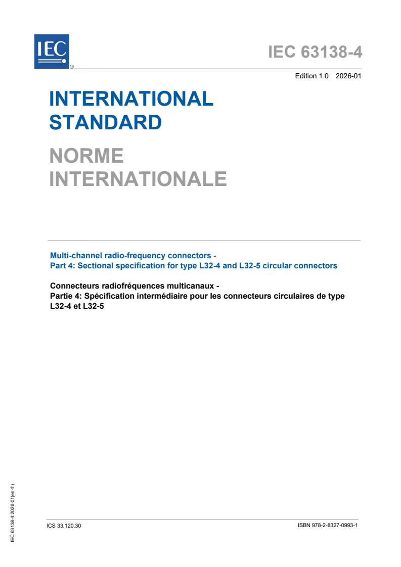 IEC 63138-4:2026 - Multi-channel radio-frequency connectors - Part 4: Sectional specification for type L32-4 and L32-5 circular connectors Released:20. 01. 2026 Isbn:9782832709931