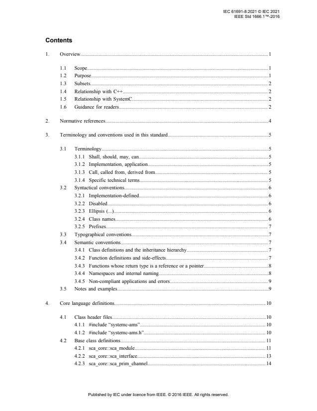 IEC 61691-8:2021(E) defines the Analog/Mixed-Signal extensions for SystemC®, as an ANSI standard C++ class library based on SystemC for system and hardware design including analog/mixed-signal elements. The general purpose of the SystemC AMS extensions is to provide a C++ standard for designers and architects, who need to address complex heterogeneous systems that are a hybrid between hardware and software. This standard is built on the IEEE Std 1666™-2011 (SystemC Language Reference Manual) and extends it to create analog/mixed-signal, multi-disciplinary models to simulate continuous-time, discrete-time, and discrete-event behavior simultaneously. This standard is published as a double logo IEC-IEEE standard.