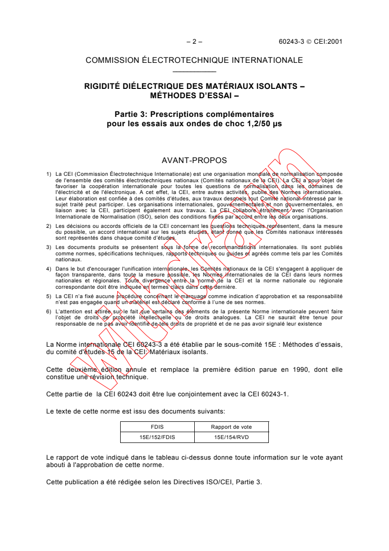 La présente partie de la CEI 60243 donne des prescriptions complémentaires à celles de la