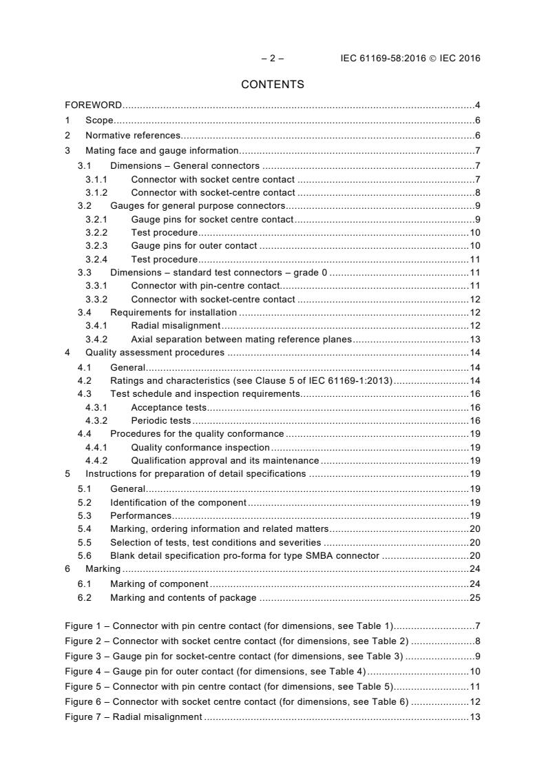 IEC 61169-58:2016 references mandatory tests drawn from IEC 61169-1 and specifies acceptance and periodic test schedules, inspection protocols, and quality conformance assessments.Detail Specification Preparation