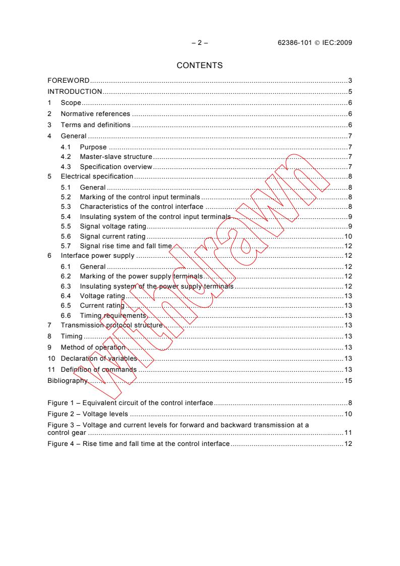 IEC 62386-101:2009 is a standard published by the International Electrotechnical Commission (IEC). Its full title is "Digital addressable lighting interface - Part 101: General requirements - System". This standard covers: IEC 62386-101:2009 specifies a protocol for control by digital signals of electronic lighting equipment used on a.c. or d.c. supplies. This Part 101 is intended to be used in conjunction with Part 102, which contains general requirements for the relevant product type (control gear), and with the appropriate part 2XX (particular requirements for control gear) containing clauses to supplement or modify the corresponding clauses in Parts 101 and 102 in order to provide the relevant requirements for each type of product. This International Standard, together with IEC 62386-102 and IEC 62386-201, replaces Clause E.4, "Control by digital signals", and Annex G, "Test procedures".
