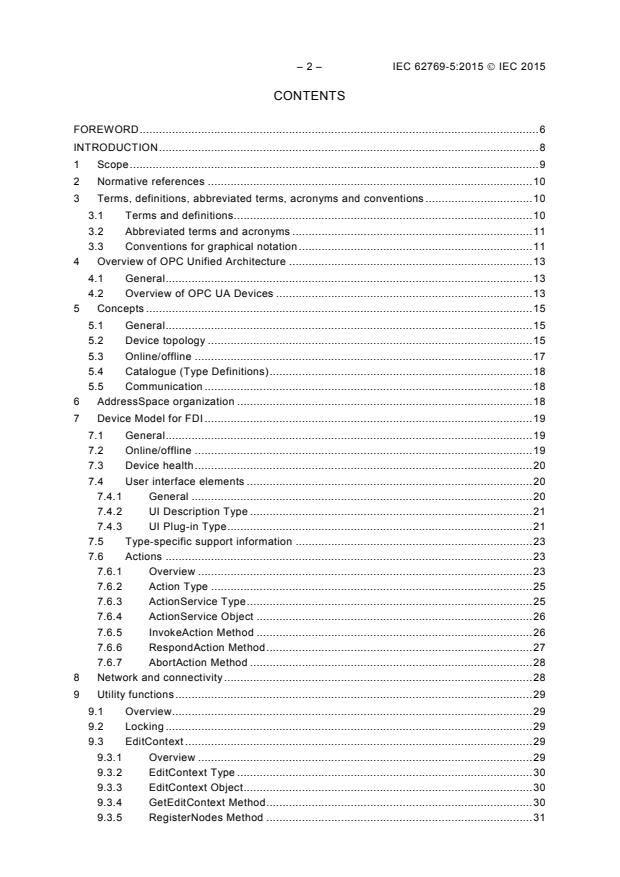 IEC 62769-5:2015 is a standard that defines the FDI Information Model. The main purpose of this model is to represent the structure and properties of devices and communication networks in an automation system. It includes information about the relationships between devices, their properties, and the operations that can be performed on them.