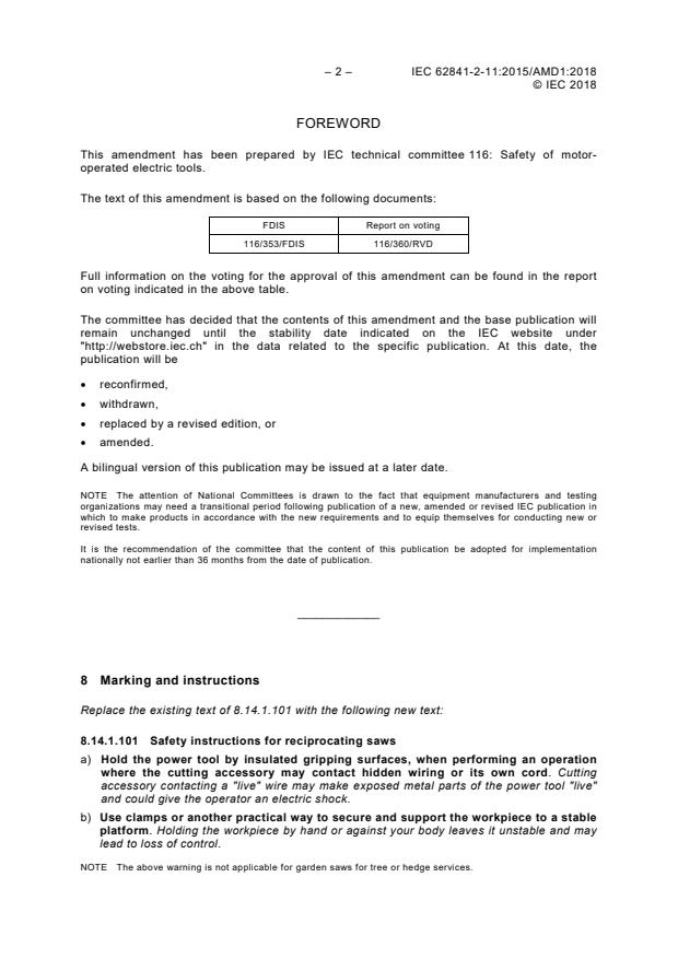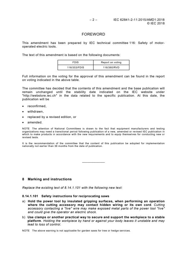 – 2 – IEC 62841-2-11:2015/AMD1:2018