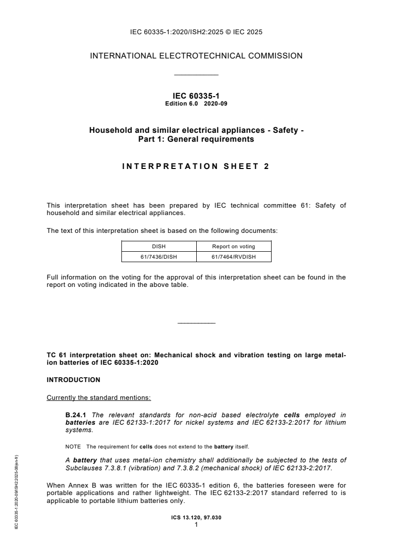 - Battery safety: New and revised provisions for battery‑operated appliances, including a dedicated Clause 12 for charging of metal‑ion batteries and Annex B for rechargeable battery requirements.