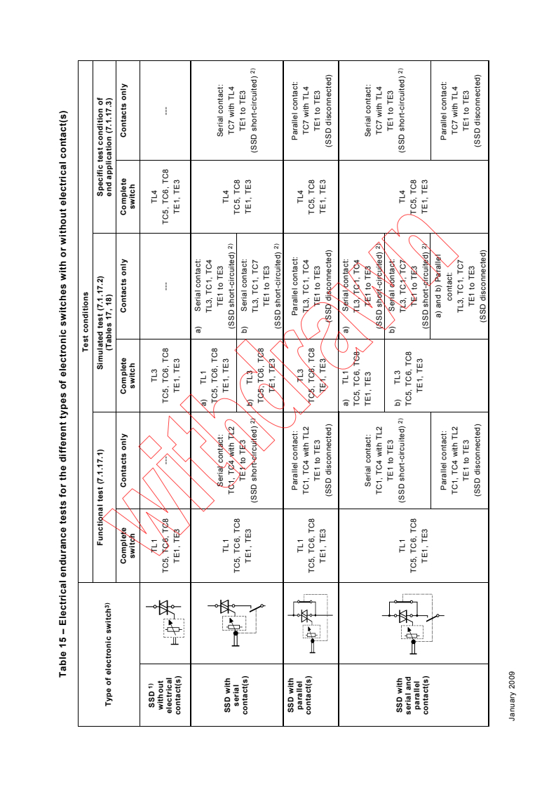 Table 15 – Electrical endurance tests for the different types of electronic switches with or without electrical contact(s)