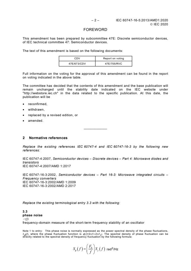 The amendment revises references to related standards including:- IEC 60747-4: Microwave diodes and transistors