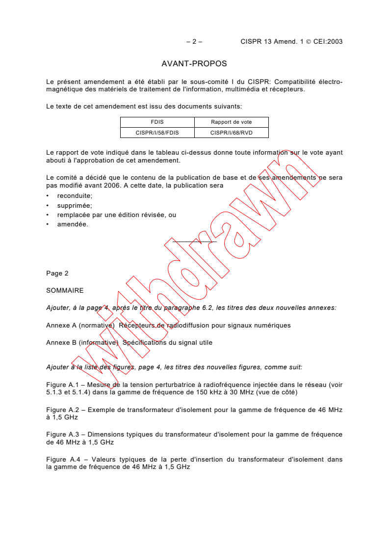 – 2 – CISPR 13 Amend. 1 CEI:2003