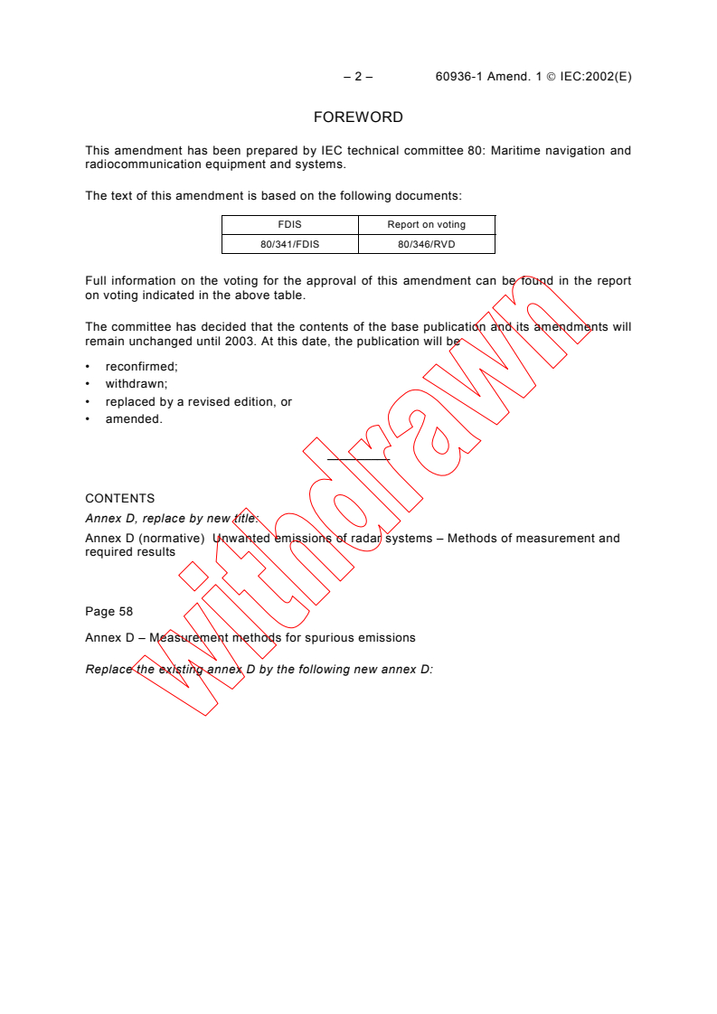 IEC 60936-1:1999/AMD1:2002 - Amendment 1 - Maritime navigation and radiocommunication equipment and systems - Radar - Part 1: Shipborne radar - Performance requirements - Methods of testing and required test results Released:6/14/2002 Isbn:2831864178