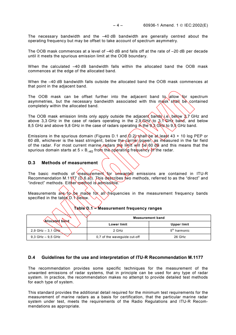 Annex D (normative) Unwanted emissions of radar systems – Methods of measurement and