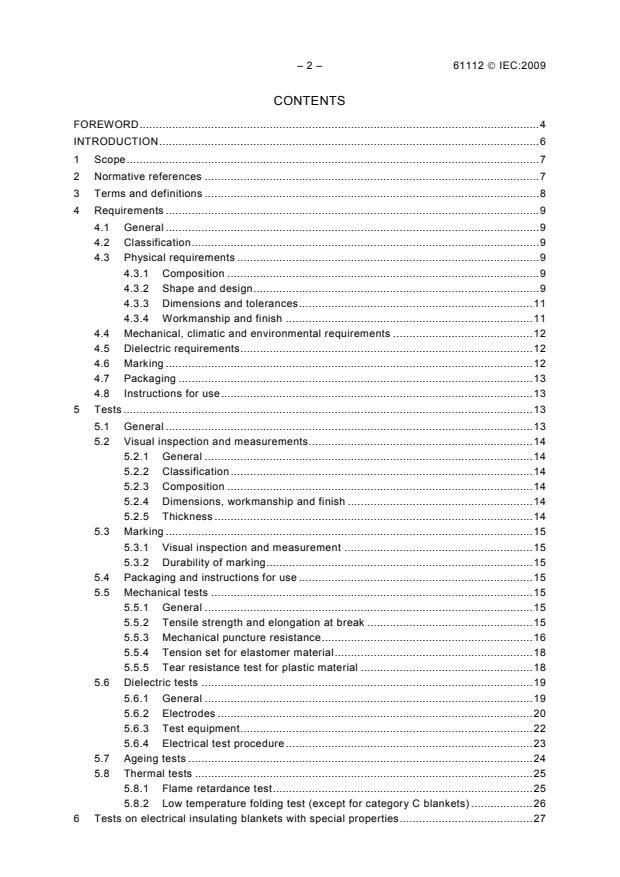 IEC 61112:2009 is a standard published by the International Electrotechnical Commission (IEC). Its full title is "Live working - Electrical insulating blankets". This standard covers: IEC 61112:2009 is applicable to electrical insulating blankets for the protection of workers from accidental contact with live or earthed electrical conductors, apparatus or circuits and avoidance of short circuits on electrical installations. This second edition cancels and replaces the first edition, published in 1992, and its Amendment 1 (2002). This edition constitutes a technical revision. It includes the following significant technical changes from the previous edition: - general review of the requirements and test provisions; - limitation of the scope in terms of the minimum width of electrical insulating blankets in rolls; - preparation of the elements of evaluation of defects, and general application of IEC 61318 Ed.3; - revision of existing annexes; - deletion of Annexes D and F, not applicable according to IEC 61318 Ed.3; - introduction of a new normative Annex F on classification of defects.