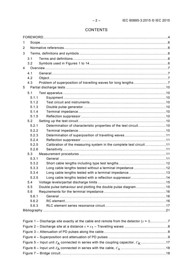 IEC 60885-3:2015 specifies the test methods for partial discharge (PD) measurements on lengths of extruded power cable, but does not include measurements made on installed cable systems. Reference is made to IEC 60270 which gives the techniques and considerations applicable to partial discharge measurements in general. This second edition of IEC 60885-3 cancels and replaces the first edition, published in 1988 and constitutes a technical revision. This edition includes the following significant technical changes with respect to the previous edition: - The definition of sensitivity as twice the background noise level has been removed and replaced by a practical assessment of sensitivity based on the minimum level of detectable discharge. - References to measurements of pulse heights in mm on an oscilloscope have been replaced by measurements of partial discharge magnitude in pC. - The order of the clauses has been revised in line with the general numbering scheme of IEC standards and to provide clarity in order to facilitate its practical use. Section 3 of the first edition (Application guide) has been removed as it is considered that background information is better obtained from the original references as listed in the bibliography.
