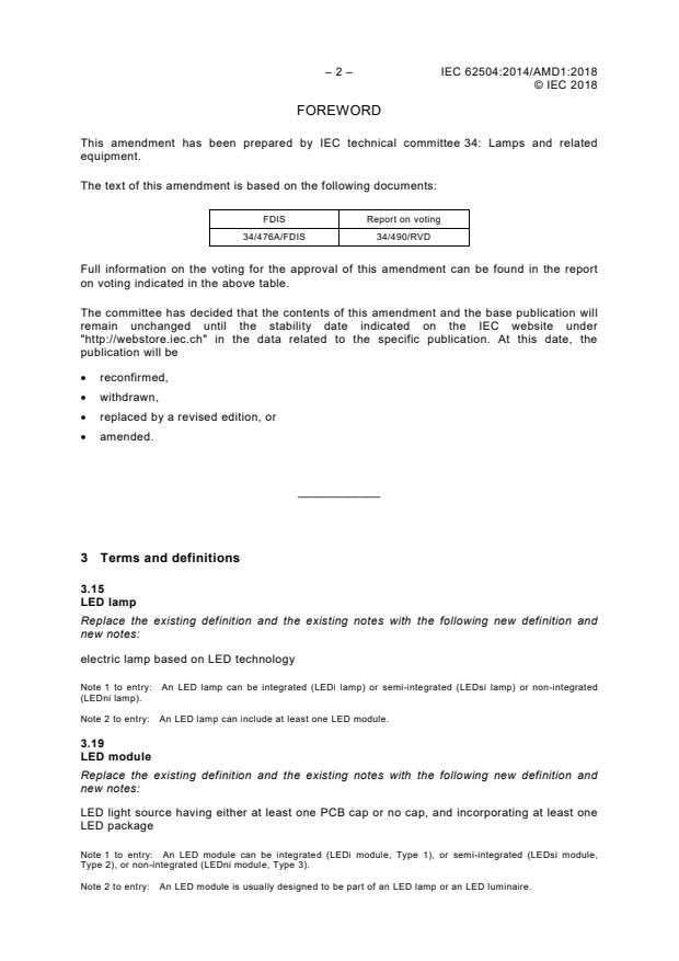 Amendment 1 - General lighting - Light emitting diode (LED) products and related equipment - Terms and definitions