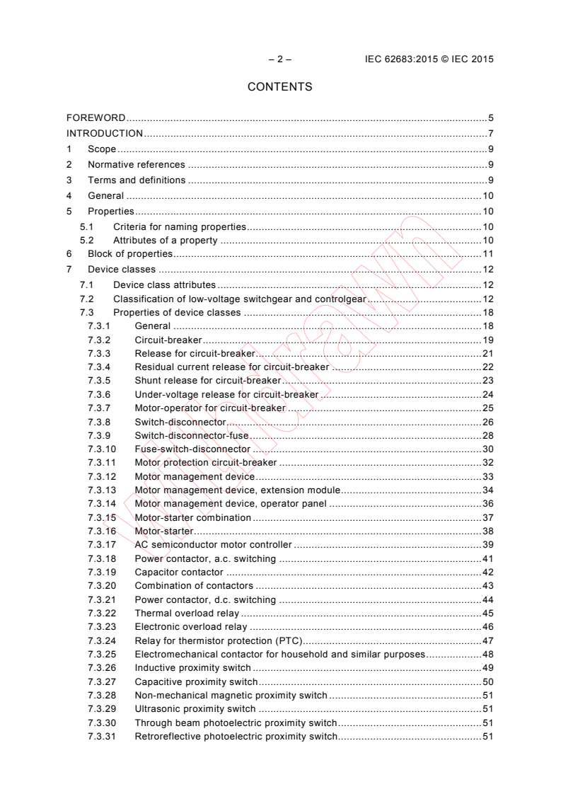 IEC 62683:2015 is a standard published by the International Electrotechnical Commission (IEC). Its full title is "Low-voltage switchgear and controlgear - Product data and properties for information exchange". This standard covers: IEC 62683:2015 establishes the reference dictionary of the general description of low-voltage switchgear and controlgear classes based on defined properties. This second edition cancels and replaces the first edition published in 2013. This edition constitutes a technical revision. This present edition includes the following significant technical changes with respect to the first edition: a) new descriptions of 41 classes for the families of circuit-breakers and their associated devices (ACC2xx), switches and disconnectors (ACC3xx), control switches (ACC5xx) and terminal blocks (ACC7xx) in addition to 14 classes for motor-starters of the first edition; b) new associated properties and value lists necessary for the new classes; c) three new blocks of properties: ACC017 Head of the control circuit device, ACC018 Light block of the control circuit device and ACC041 Over-current release; d) use of LEVEL_TYPE for replacing minimum and maximum properties into a single property with two values.