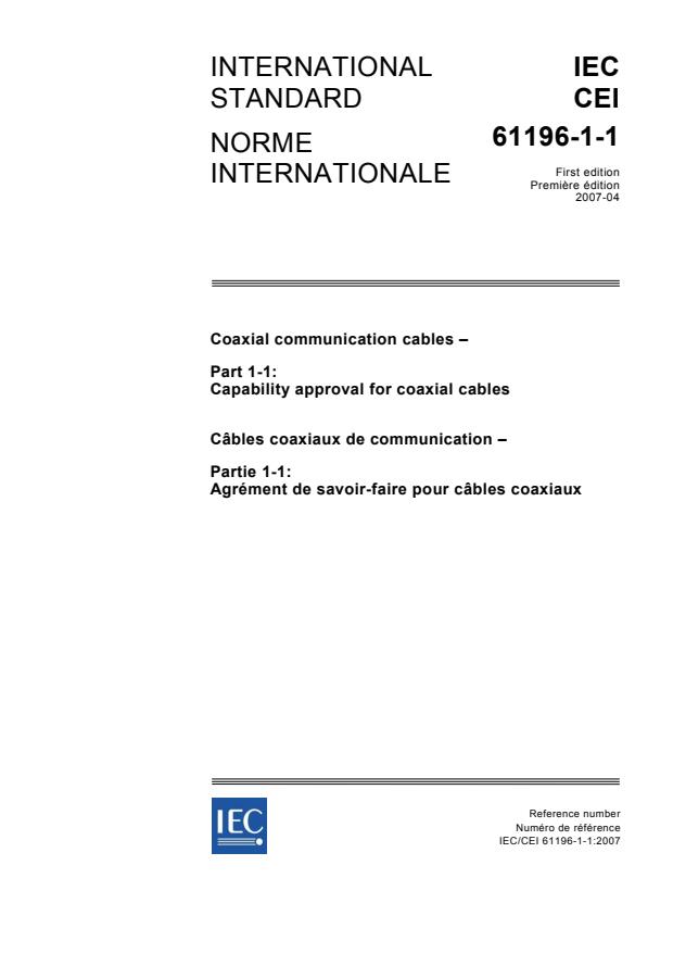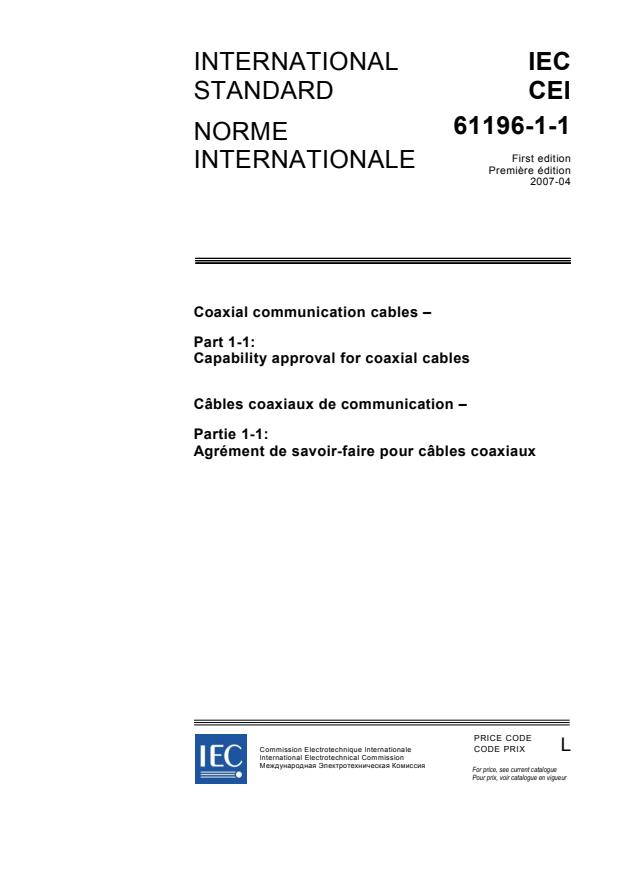 IEC 61196-1-1:2007 is an international standard developed by the International Electrotechnical Commission (IEC) that defines the Capability Approval requirements for coaxial communication cables. This standard is part of the IEC 61196 series, which addresses generic and sectional specifications for coaxial cables used in various communication applications.