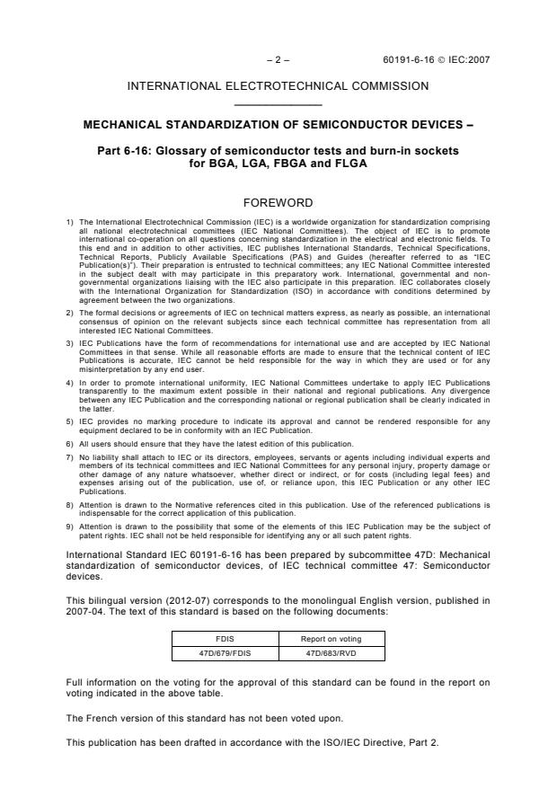 IEC 60191-6-16:2007 - Mechanical standardization of semiconductor devices - Part 6-16: Glossary of semiconductor tests and burn-in sockets for BGA, LGA, FBGA and FLGA