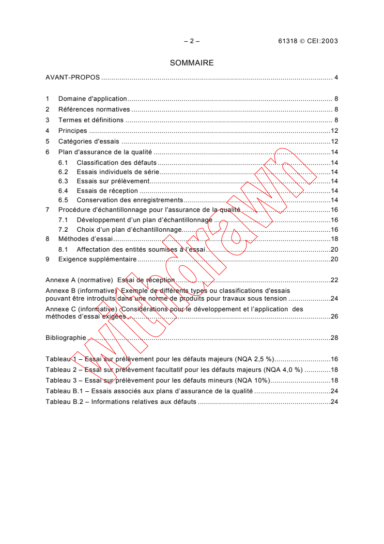 7 Procédure d'échantillonnage pour l'assurance de la qualité