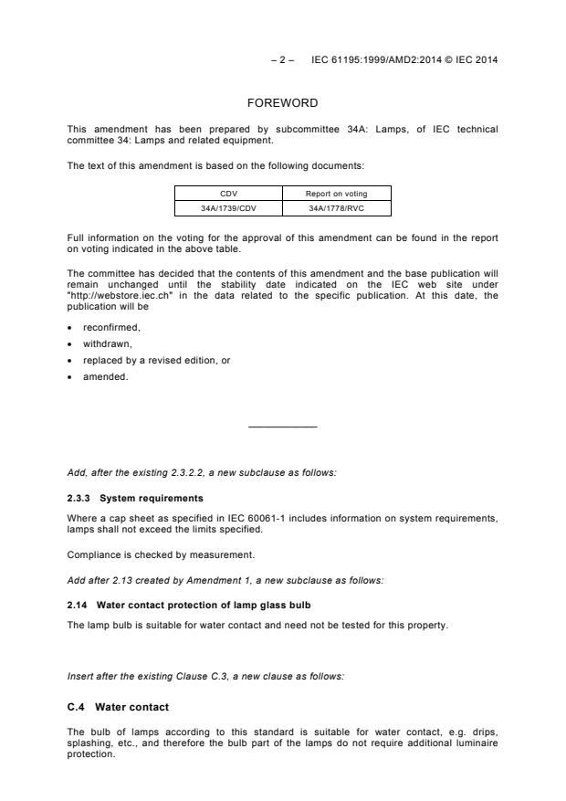 Amendment 2 - Double-capped fluorescent lamps - Safety specifications
