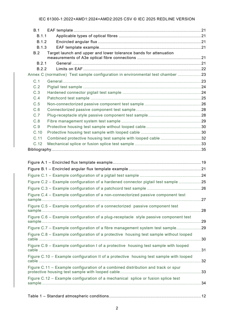 - Test sample configuration: prescriptive configurations for pigtails, patchcords, passive components, splice protectors, fibre management systems and protective housings for environmental chamber testing (Annex C).