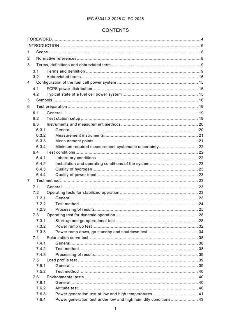 Keywords: IEC 63341-3:2025, fuel cell power system, FCPS, railway applications, rolling stock, hydrogen, performance test methods, polarization curve, load profile, environmental tests, EMC, test report.