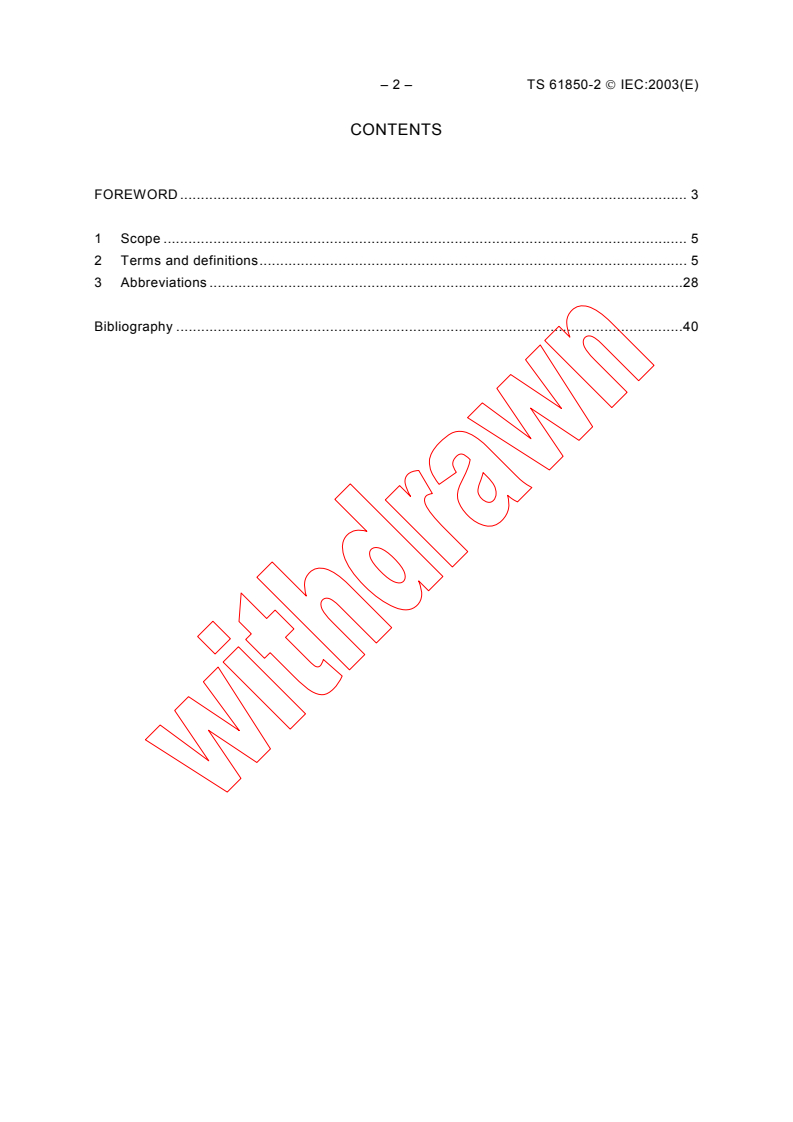 IEC TS 61850-2:2003 is a technical specification published by the International Electrotechnical Commission (IEC). Its full title is "Communication networks and systems in substations - Part 2: Glossary". This standard covers: Contains the glossary of specific terms and definitions used in the context of Substation Automation Systems which are standardized in the various parts of the IEC 61850 series. This publication is of core relevance for Smart Grid.