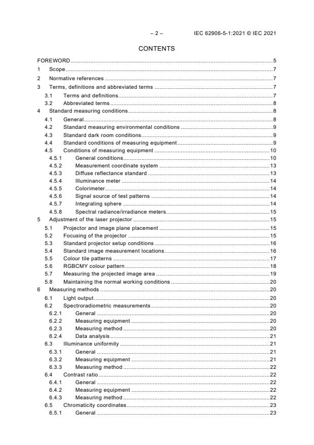 IEC 62906-5-1:2021(E) specifies the standard measurement conditions and measurement methods for front projection displays without screen which use lasers or laser hybrids as light sources. The hybrid light sources can use both lasers and spontaneous emission-based light sources. This document covers optical performance measurements for full-frame projection technologies such as digital micro mirror devices (DMDs), liquid crystal on silicon (LCOS), and liquid crystal display (LCD) projectors. Other displays, such as raster-scanned (flying spot) projection displays, are not included.