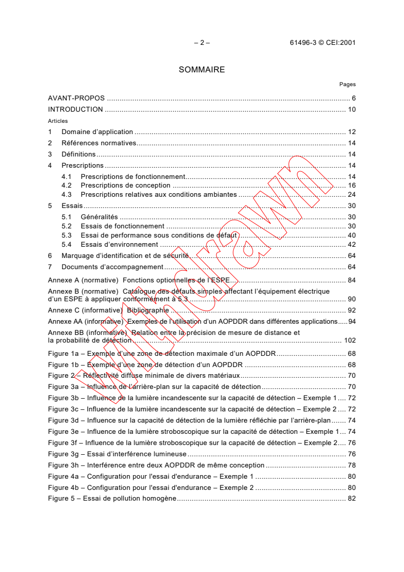 IEC 61496-3:2001 - Safety of machinery - Electro-sensitive protective equipment - Part 3: Particular requirements for Active Opto-electronic Protective Devices responsive to Diffuse Reflection (AOPDDR) Released:2/8/2001 Isbn:2831855705