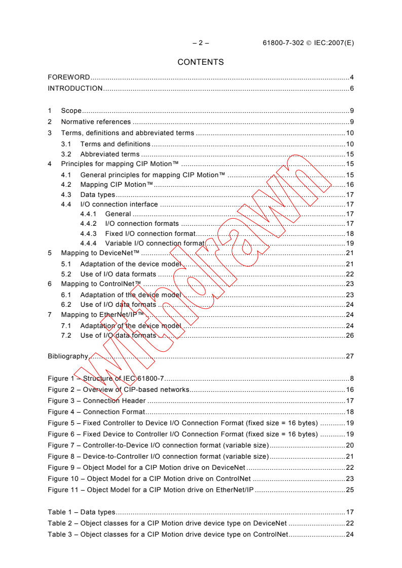 IEC 61800-7-302:2007 specifies profiles for Power Drive Systems (PDS) and their mapping to existing communication systems by use of a generic interface model. It also specifies the mapping of the profile type 2 (CIP MotionTM) specified in IEC 61800-7-202 onto different network technologies: DeviceNet (CP 2/3), ControlNet (CP 2/1), EtherNet/IP (CP 2/2).