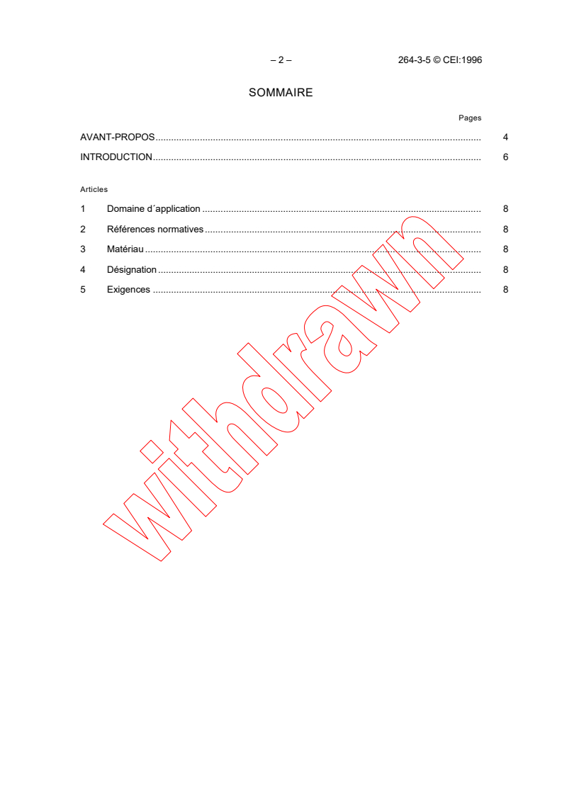 IEC 60264-3-5:1996 is an international standard published by the International Electrotechnical Commission (IEC) that specifies the requirements for spool containers made from thermoplastic materials used with taper barrelled delivery spools. This standard is part of the IEC 264 series concerned with the packaging of winding wires, focusing on the delivery spool containers designed for electrical wires used in coils and windings. The document ensures that thermoplastic spool containers meet uniform quality, dimensional, and material requirements to facilitate effective packaging, handling, and protection of winding wires.