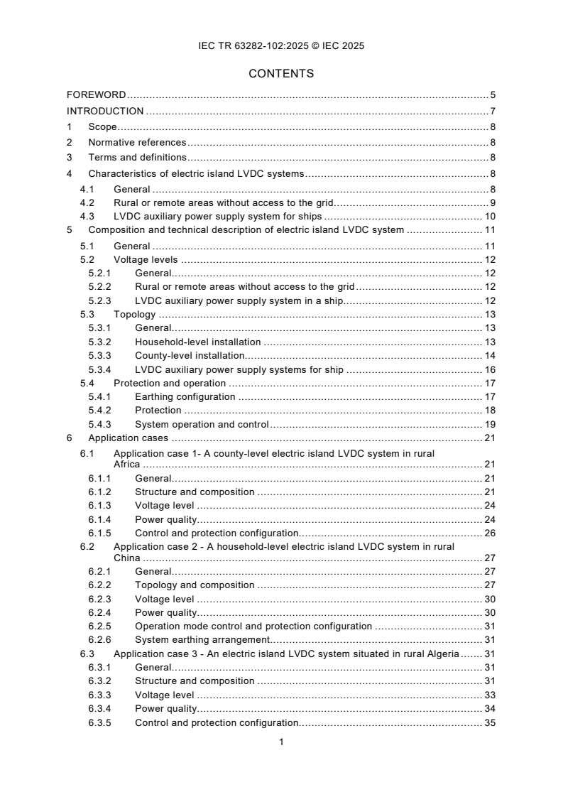 Keywords: IEC TR 63282-102:2025, LVDC, electric island, low-voltage DC, rural electrification, LVDC ship auxiliary, microgrid, nano-grid, DC bus, energy management.