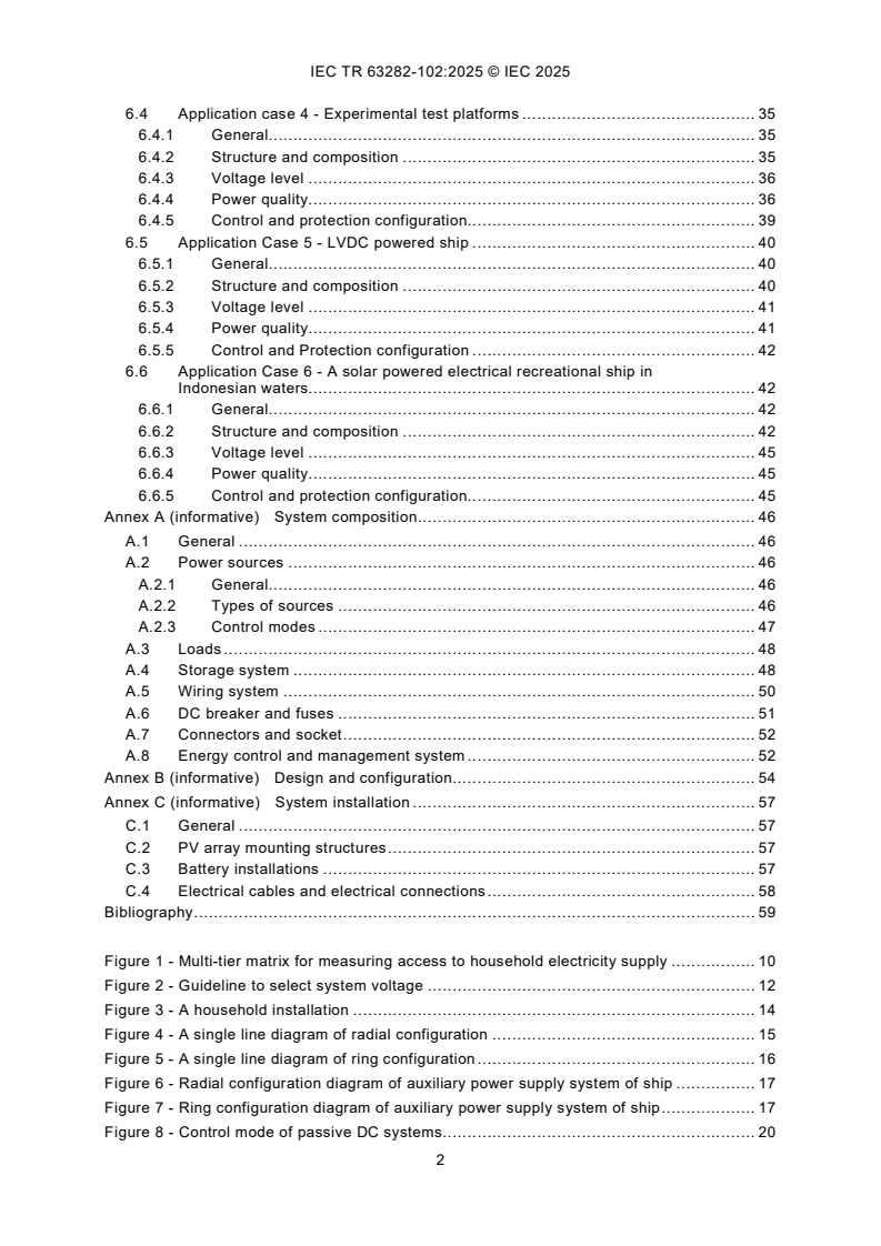 IEC TR 63282-102:2025 assesses the existing technical requirements (by TC 64, TC 82, SyC LVDC) and close any gaps related to electric island LVDC power supply systems in rural or remote areas without electricity up to a maximum of 1 500 V only. Additionally, it covers the case of LVDC auxiliary power supply systems for ships.