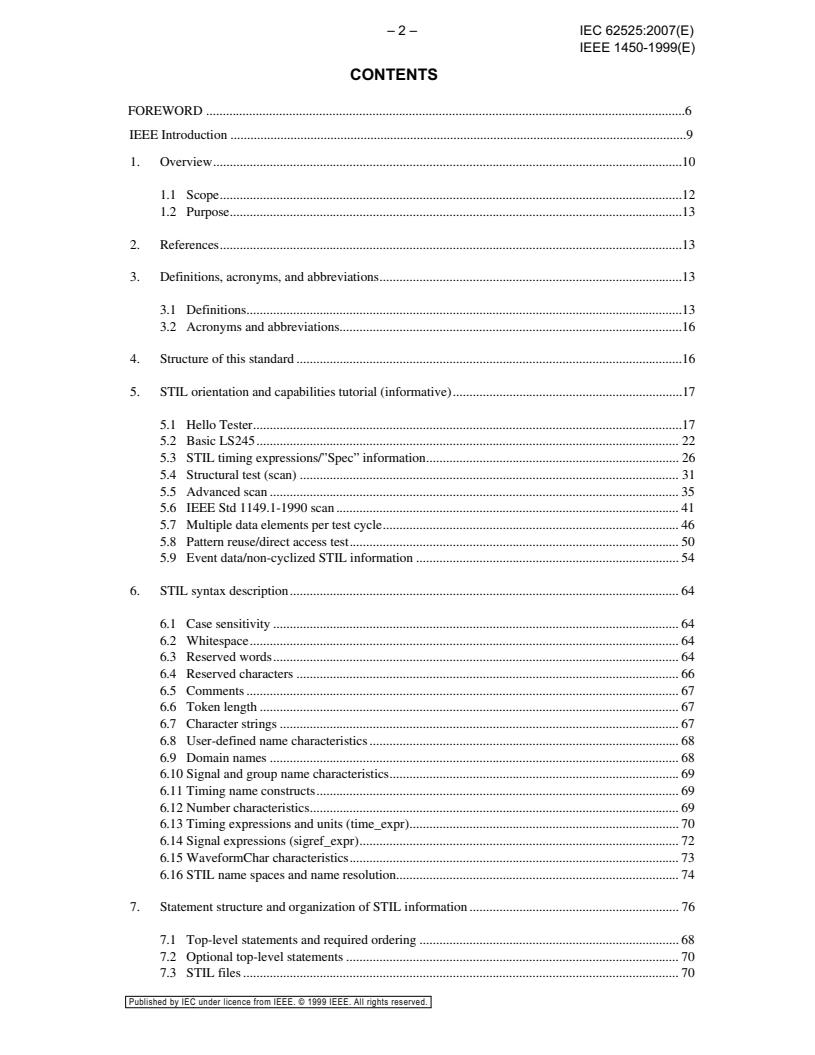 Keywords: IEC 62525, STIL, Standard Test Interface Language, digital test vector data, ATE, CAE, ATPG, scan, BIST, waveform, timing, pattern, DUT.
