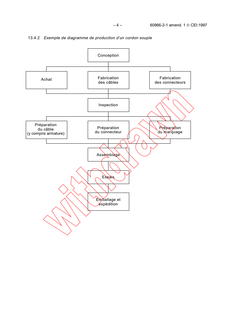 This document provides practical guidelines and test schedules for manufacturers aiming to comply with stringent quality standards. It builds on the base specification IEC 60966-2-1:1991, updating key processes such as design, manufacturing, inspection, and final testing of flexible coaxial cable assemblies.