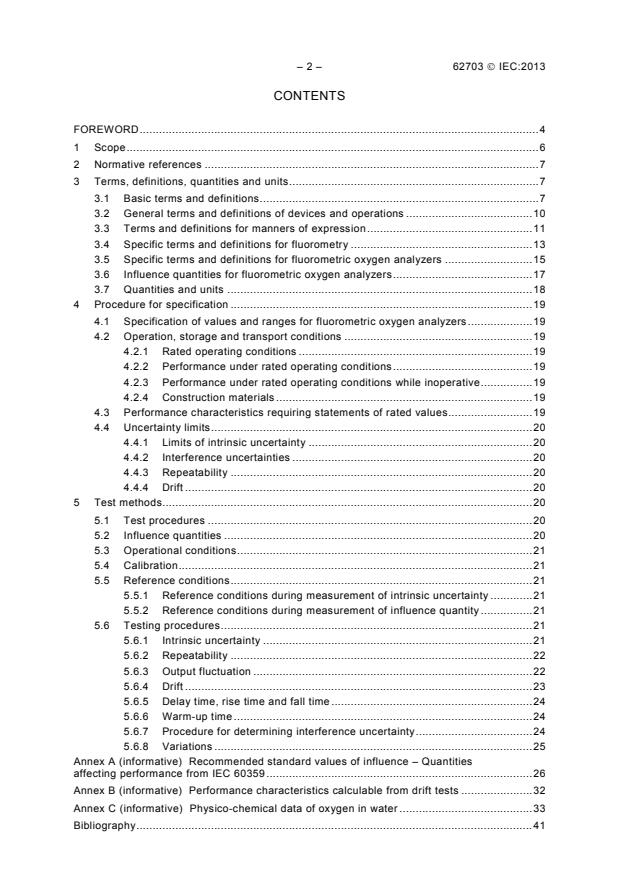 IEC 62703:2013 is a standard published by the International Electrotechnical Commission (IEC). Its full title is "Expression of performance of fluorometric oxygen analyzers in liquid media". This standard covers: IEC 62703:2013 specifies the general aspects in the terminology and definitions related to the performance of fluorometric oxygen analyzers used for the continuous determination of dissolved oxygen partial pressure or concentration in liquid media; unifies methods used in making and verifying statements on the functional performance of such analyzers; specifies which tests should be performed in order to determine the functional performance and how such tests should be carried out and provides basic documents to support the application of standards of quality assurance within ISO 9001.