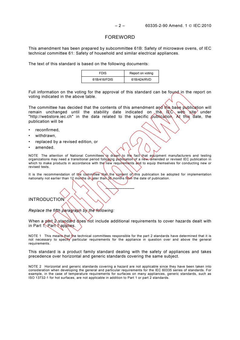 IEC 60335-2-90-A1:2010 Amendment 1 NOTE The attention of National Committees is drawn to the fact that equipment manufacturers and testing organizations may need a transitional period following publication of a new, amended or revised IEC publication in which to make products in accordance with the new requirements and to equip themselves for conducting new or revised tests. It is the recommendation of the committee that the content of this publication be adopted for implementation nationally not earlier than 12 months or later than 36 months from the date of publication.