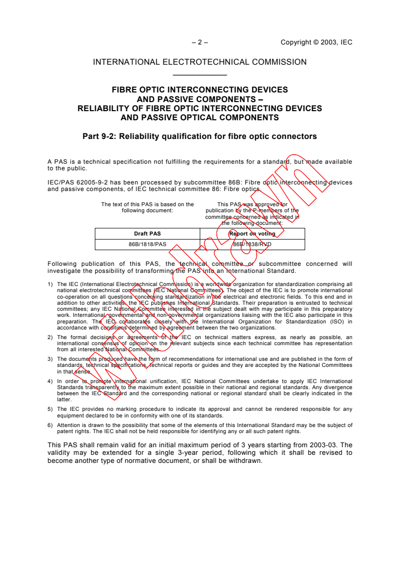 This PAS/Pre-standard has been produced by IEC/TC 86 Fibre Optics, SC 86B Fibre Optic