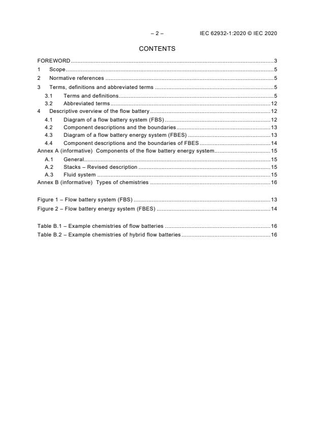 - Cross-references in the document cite related IEC work such as IEC 61427-2 and IEC 62933-1 for battery management, efficiency and EES concepts; users should consult later parts of IEC 62932 series for tests, safety and performance requirements.