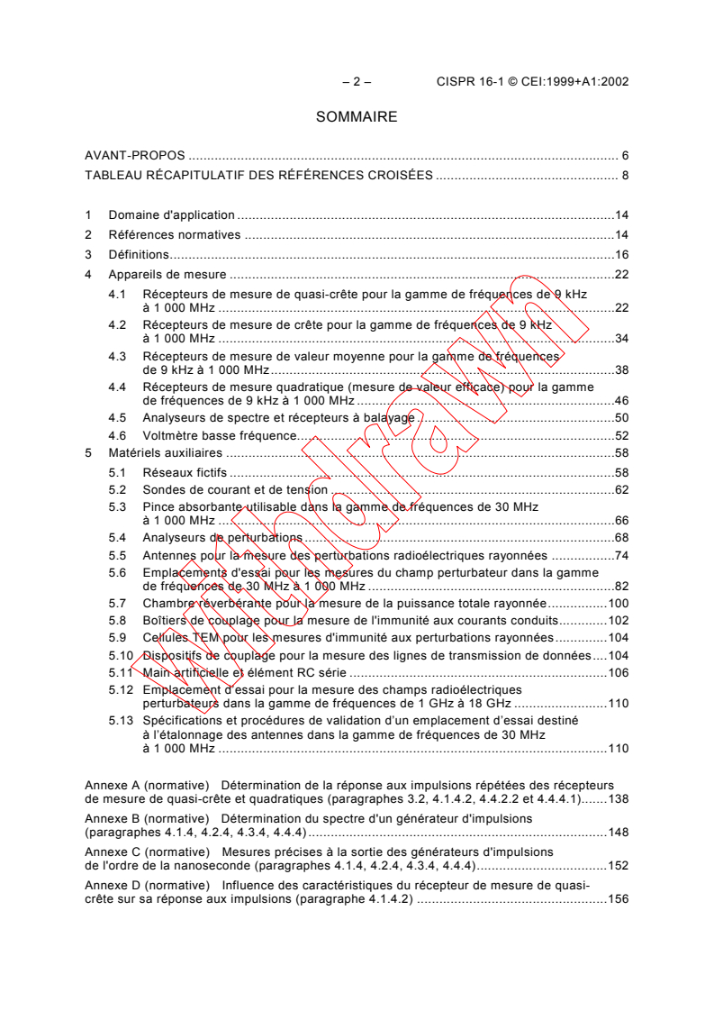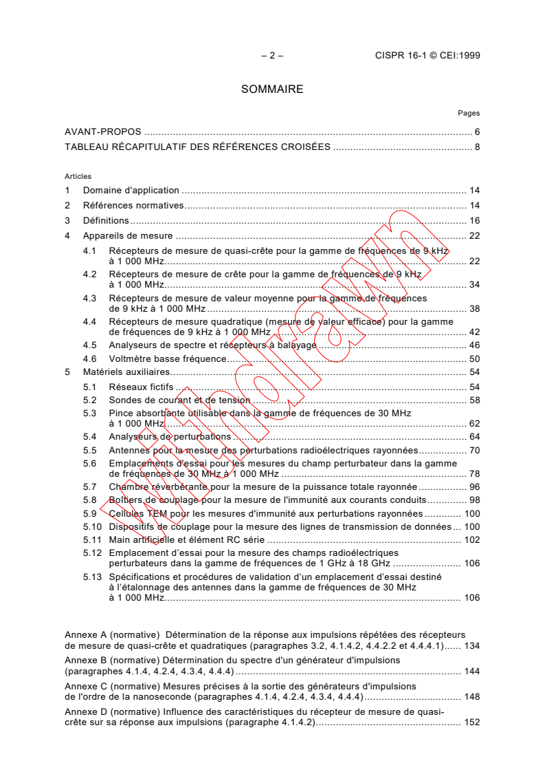 CISPR 16-2:1996, Spécifications pour les appareils et méthodes de mesure des perturbations