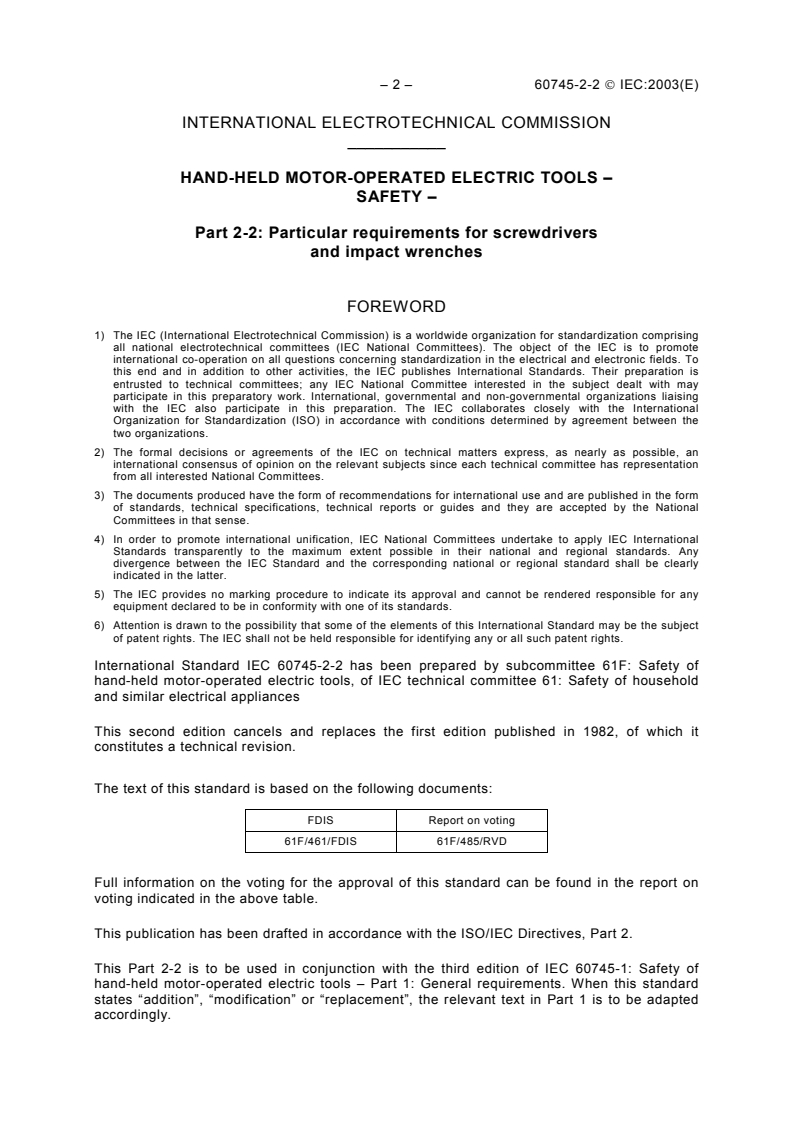 IEC 60745-2-2:2003 - Hand-held motor-operated electric tools - Safety - Part 2-2: Particular requirements for screwdrivers and impact wrenches Released:1/23/2003 Isbn:2831864917