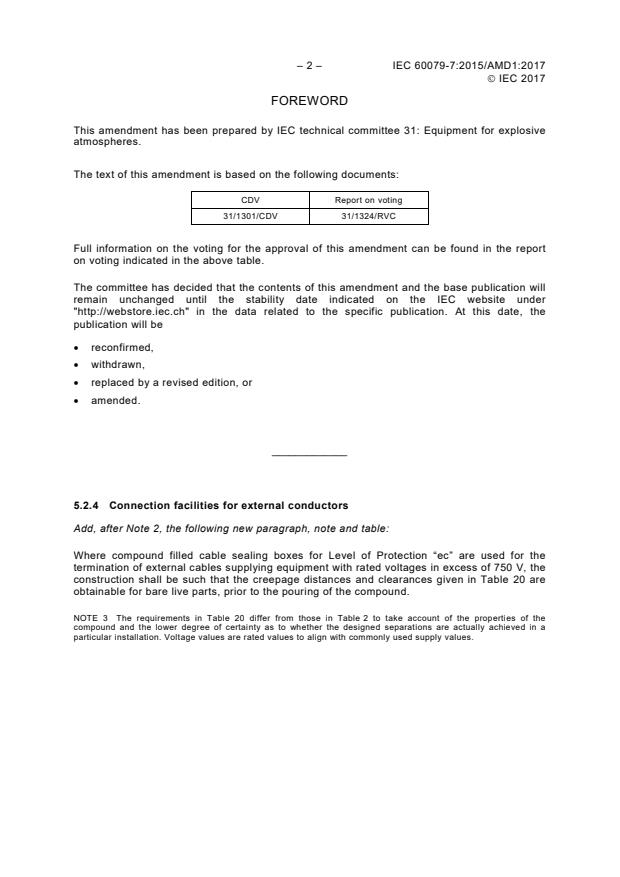 Amendment 1 - Explosive atmospheres - Part 7: Equipment protection by increased safety "e"