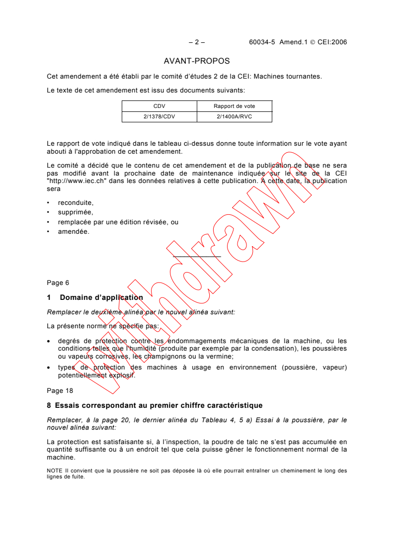 Cet amendement a été établi par le comité d’études 2 de la CEI: Machines tournantes.