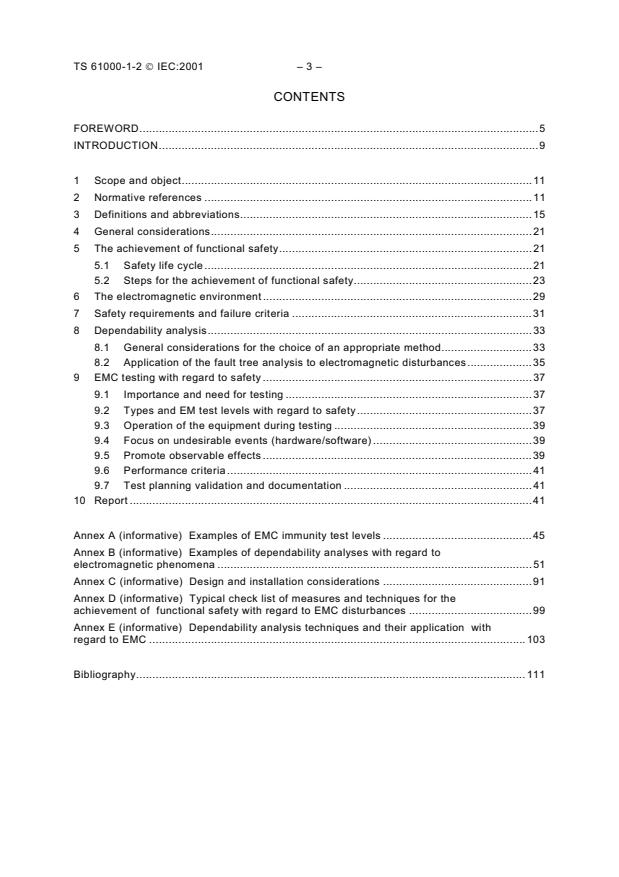 IEC/TS 61000-1-2 is a technical specification published by the International Electrotechnical Commission (IEC). Its full title is "Electromagnetic compatibility (EMC) - Part 1-2: General - Methodology for the achievement of the functional safety of electrical and electronic equipment with regard to electromagnetic phenomena". This standard covers: Specifies a methodology for the achievement of functional safety with regard to electromagnetic (EM) phenomena of electrical and electronic equipment: apparatuses, systems and installations, as installed and used under operational conditions.[<BR>]It specifies procedures for[<BR>]- determining requirements;[<BR>]- requirements;[<BR>]- design aspects including installation of the equipment;[<BR>]- analytical assessment methods;[<BR>]- testing recommendations;[<BR>]- documentation.