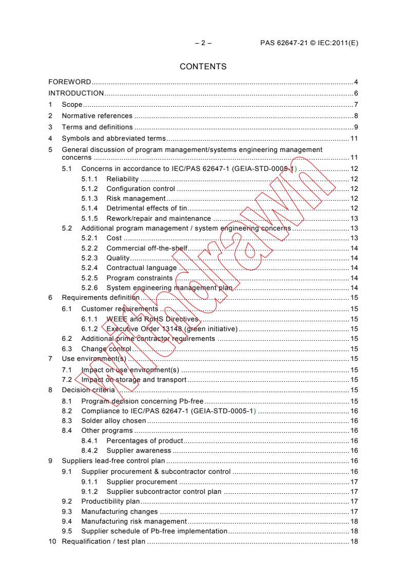 IEC/PAS 62647-21:2011(E) is designed to assist program management and/or systems engineering management in managing the transition to lead-free (Pb-free) electronics to assure product reliability and performance.