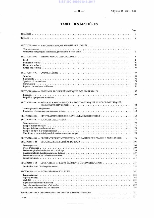 Obsega približno 950 izrazov in definicij za pospeševanje mednarodne standardizacije pri uporabi količin, enot, simbolov in terminologije na področju razsvetljave. Je tudi Objava CIE 17.4: Mednarodni slovar razsvetljave. Ima status horizontalnega standarda v skladu z vodilom 108 Mednarodne elektrotehniške komisije.