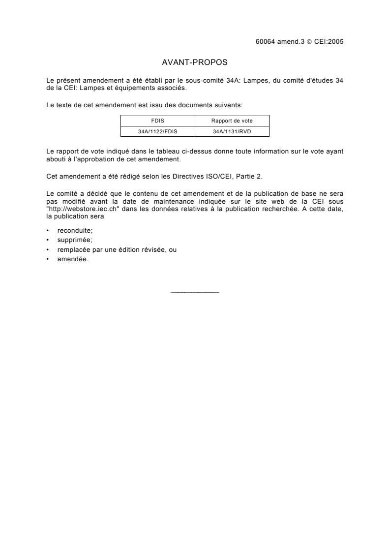 Amendement 3 - Lampes à filament de tungstène pour usage domestique et éclairage général similaire - Prescriptions de performances